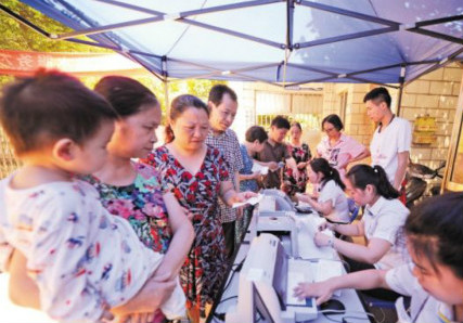 長(zhǎng)沙供水有限公司城東分公司在晚報(bào)大道一小區(qū)給居民辦理相關(guān)業(yè)務(wù)